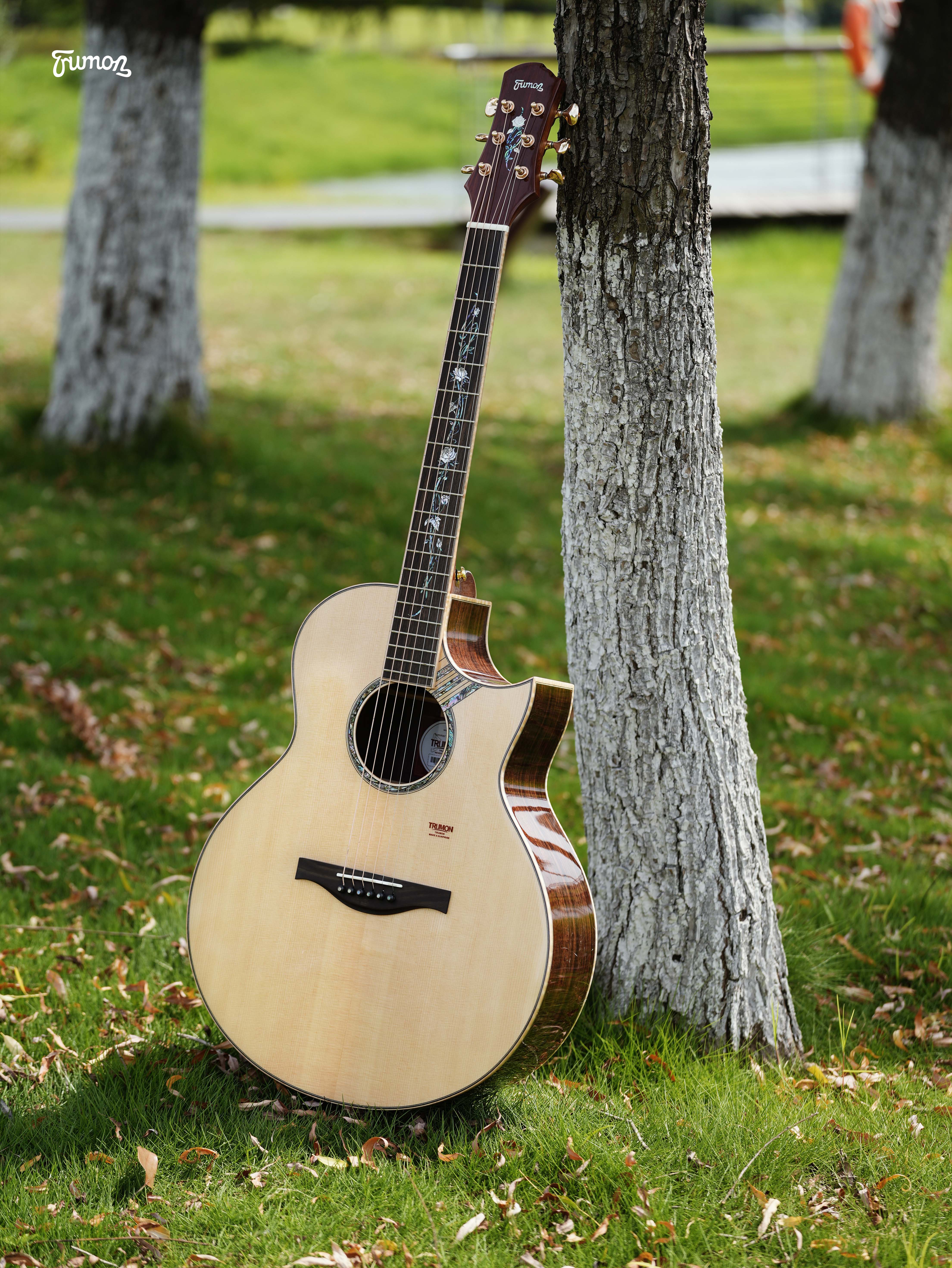 Summer still retain its classic part, combine with Trumon's unique TFL peak cutaway body, giving the Summer a temperament from the inside out. Selected solid Sitka Spruce top with sensitive dynamic audio response ,matched with East Indian Rosewood which owns rich low-frequency and warm tones,the moments when the resonance of two selected high-quality woods collided,a scratching sound will be deeply imprinted in your mind, like the Summer in memory which will not fade for a long time.